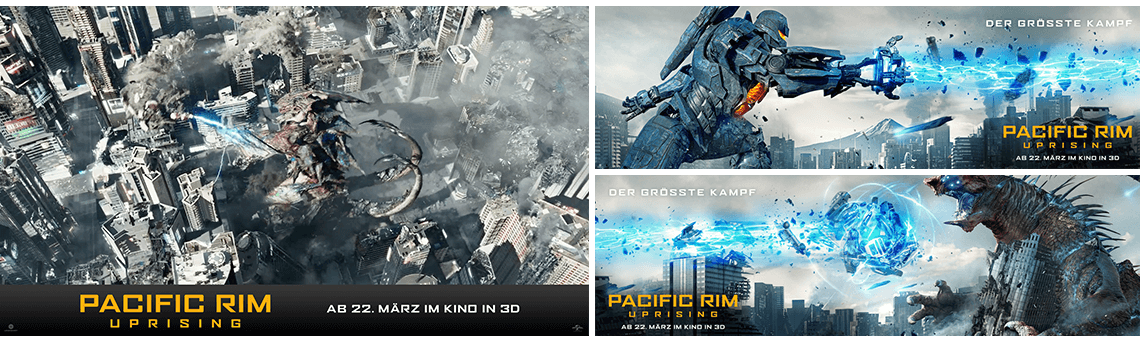 Onlinewerbemittel und Videoanimationen für den Blockbuster Film „Pacific Rim 2“: Kraftvolle Bilder für eine epische Schlacht auf der Kinoleinwand.
