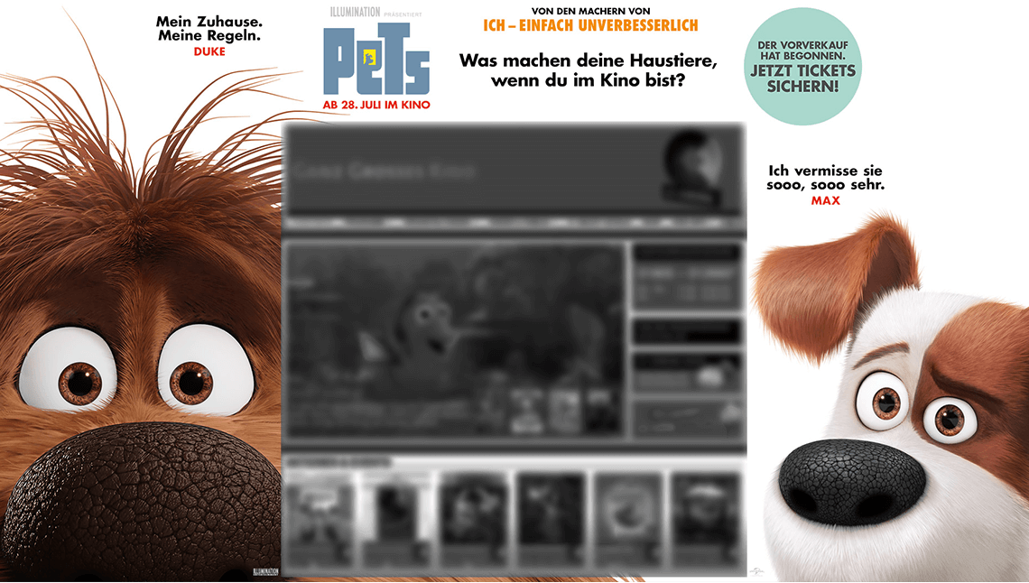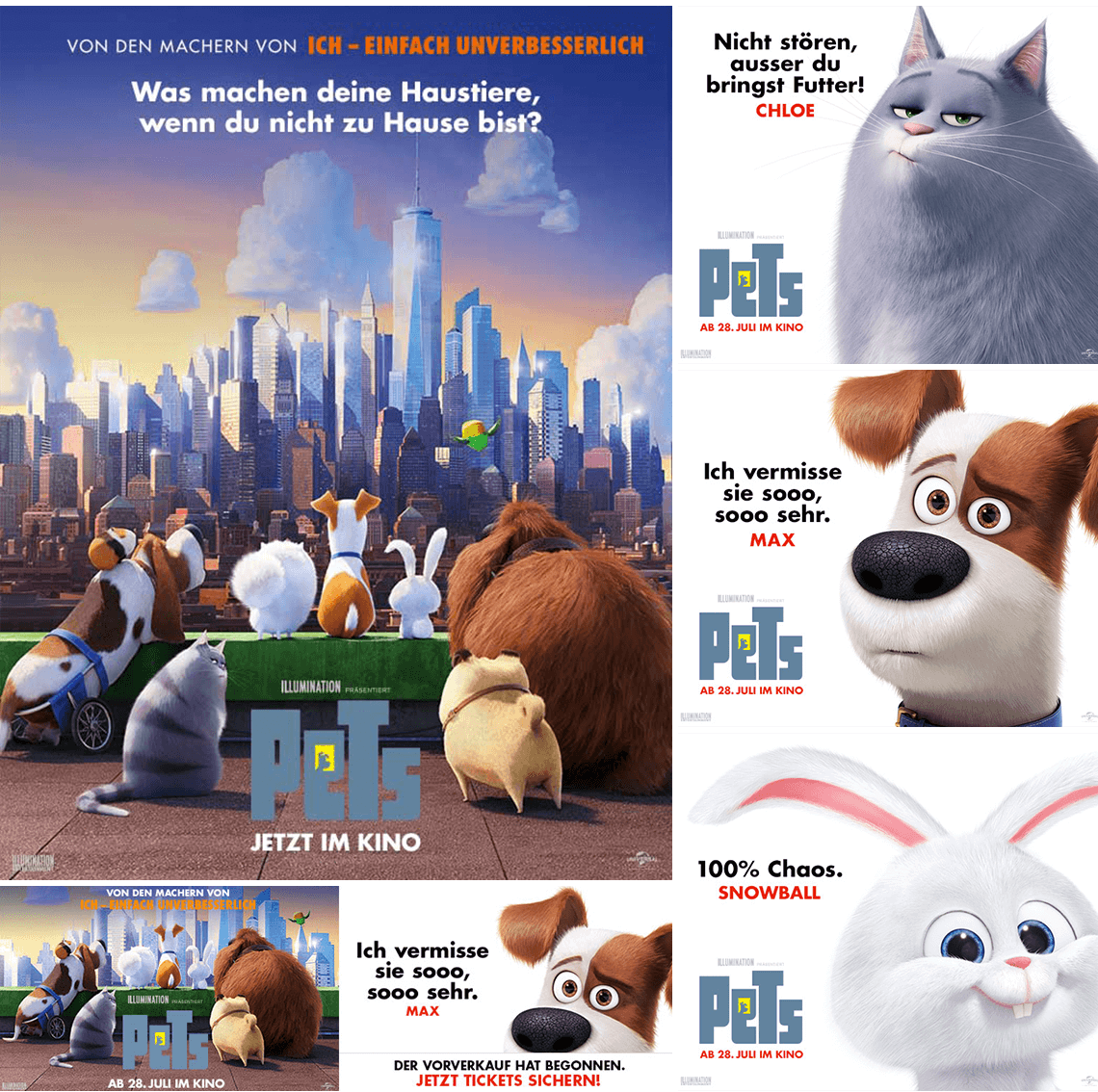 Umfangreiche Online-Kampagne für den Universal Film „Pets“: Digitale Inszenierung der Hauptdarsteller als Sympathieträger in zahlreichen Werbemitteln und Videoanimationen.