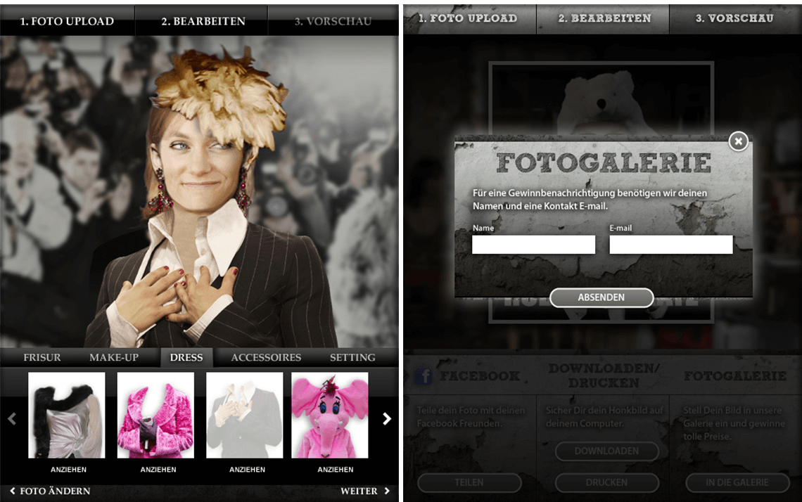Begleitend zu der Thematik des Films wurde eine interaktive App von mir entwickelt, in der die User die Möglichkeit haben, sich selbst als Filmavatar zu gestalten. Per Drag & Drop konnte man seinen Avatar mit diversen Accessoires schmücken.